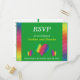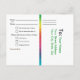 Ein schlichtes, elegantes und auffälliges Design, das Ihre wichtigen Informationen an der Front und in der Mitte leicht lesbar macht. Der solide Hintergrund, der von einem Schlag Regenbogenfarbe umgeben ist, macht diese Postkarte wirklich im Briefkasten auffällig. Wählen Sie eine beliebige Farbe für den Hintergrund (hier mit Grün auf der Vorderseite und Weiß auf der Rückseite). Die Rückseite ist vorformatiert, damit Sie Ihre Rücksendeadresse eingeben und den UAWG wieder anfordern können. Verlass das Feld Empfänger leer, wenn du es lieber handadressieren möchtest. Verwenden Sie die handlichen Vorlagenfelder, um Ihre Informationen schnell personalisieren zu können. Klicken Sie auf "Weiter anpassen", um Schriftart, Größe, Farben und Positionen zu ändern. Postkarten sind eine sehr kostengünstige Möglichkeit, RSVPs zu machen, da Sie keinen zweiten Umschlag für sie kaufen müssen und Sie $0.20 für jede Briefmarke (mit US-Post) gerettet haben. Sie sind auch für den Empfänger bequem, und dieser verlasse dem Absender einen Platz, in dem er Ihnen eine persönliche Note schreiben kann.