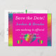 Ein schlichtes, aber elegantes Design, das die wichtigen Informationen an der Front und im Zentrum in einer lesbaren Art und Weise präsentiert. Der solide Hintergrund, umrahmt von einem Schlag Regenbogenfarbe, macht diese Postkarte schwer zu übersehen im Briefkasten! Wählen Sie eine beliebige Farbe für den Hintergrund (hier mit heiß rosa auf der Vorderseite und weiß auf der Rückseite). Die Rückseite ist sowohl für die Rückgabe- als auch für die Empfängeradresse vorformatiert. Wenn Sie lieber Ihre Daten speichern, dann verlass einfach die Adressfelder des Empfängers leer. Verwenden Sie die bereitgestellten Vorlagenfelder, um Ihre Daten schnell zu personalisieren. Klicken Sie auf "Weiter anpassen", um Schriftart, Größe, Farben und Positionen zu ändern.