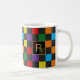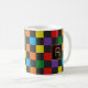 Hier ist ein wunderschönes kariertes Muster in den Regenbogenfarben des Glitzer für die Tasse. Die Schachbrett sind rot, orange, gelb, grün, blau, lila und schwarz. Wir haben zwei anpassbare Felder beiderseits hinzugefügt (rechts und links), wo Sie Ihre Touch mit Ihren Initialen hinzufügen können. Beide Felder können unabhängig voneinander verändert werden, sodass Sie auf jeder Seite ein anderes Monogramm als Initial verwenden können oder auf beiden Seiten das Gleiche verwenden können. Die Initialen werden in Gold auf einem durchsichtigen schwarzen Quadrat gedruckt, ergänzt durch einen dünnen goldenen Schlag. Dieses Design ist LGBTQ+ freundlich.