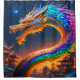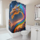 Dieser Duschvorhang hat einen bunten Drachen darauf.