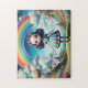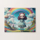 'Rainbow Dreams' Dieses Puzzle ist eine skurrile Szene eines jungen Mädchens in einer Regenbogenlandschaft.