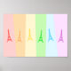 Eine Reihe Eiffelturm formt in Regenbogenfarben.