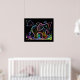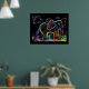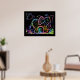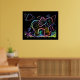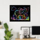 Ein niedlicher Elefant skizziert in Regenbogenfarben auf schwarzem Hintergrund.