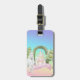 Dieses zauberhafte und bezaubernde Gepäckanhänger ist mit einem Märchenthema im Wasserfarbenstil über einem Regenbogenverlauf versehen. Ein Bild eines Schlosses wird in der Ferne, jenseits der Gärten, abgebildet. Ein majestätisches weißes Pferd läuft vor dem Bild, unter hübschen pastellfarbenen Wildblumen. Ein Beispielname wird über ein rosa Banner gedruckt.