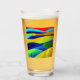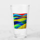 Eine abstrakte Landschaft von sanften Hügeln in lebhaften Farben mit eckigen Linien.