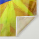Eine abstrakte Landschaft von sanften Hügeln in lebhaften Farben mit eckigen Linien.