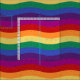 Wavy Line Regenbogenfarben von Rot, lila, Violett, Blau, Orange, Gelb und Grün über einem subtil gemusterten Hintergrund.