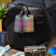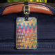 Rainbow-Gepäckanhänger im Swoon-Muster. Da dieses Muster zweimal gedruckt wird, verleiht die Transparenz der Farben die Drucktiefe und schafft neue Farben. Passen Sie es mit Ihren Namen und Kontaktinformationen an.