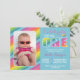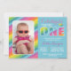 Feiern Sie das große mit diesem niedlichen Regenbogenthema zum ersten Geburtstag Foto Einladung. Niedliches Regenbogenherz. Einfach zu individualisieren Design, fügen Sie Ihr kleines Foto und Ihren eigenen Text.