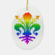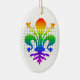Ein Regenbogen-Fleur-de-lis mit einem Fleur-de-lis-Hintergrundmuster.