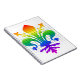 Ein Regenbogen-Fleur-de-lis mit einem Fleur-de-lis-Hintergrundmuster.