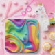 Farbenfrohe plastische Fließform abstrakt in Regenbogenfarben.