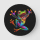 This vibrant sticker features a joyful, multi-colored frog with bright green eyes and orange feet, leaping with its mouth open. Its psychedelic rainbow pattern makes it perfect for adding fun, energy, and a splash of color to any design.