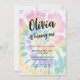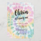 Gefärbte Krawatte 1. Geburtstagsveranstaltung mit Wirbel in Regenbogenpastellfarbe. Fügen Sie alle Ihre Party-Details für eine individuelle Geburtstagseinladung hinzu.