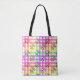Rainbow Gingham Striped Tote Tasche. Design kann auch angepasst werden an: T - Shirt, Hoodies, Tops, Kleider, Mini-Röcke, Taschen, Wandkunst, Handy und Laptop Skins Hüllen, Leggings, Kissen, Tasse, Tapisserien, Untersetzer, Wirbel, Komfort, Aufkleber, Button Buttons, Masken und Stationery, Downloads, Poster, Leinwand, Prints, Stoffe, Vorhang, Socken, und viele andere Produkte. Klicken Sie auf das Transferdesign, um es anzupassen.