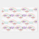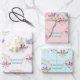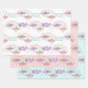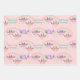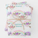Zwei lächelnde Giraffengesichte, eines mit violetten Blumen und das andere mit rosa Blume, liegen unter einem glitzernden mehrfarbigen Regenbogen auf diesem Geburtstagsgeschenkpapier. Fügen Sie einen Lavendel und einen lila Bouquet und Ihren eigenen Text in aquamarin, und Sie haben ein hübsches Packpapier für fast jeden. Im Set sind drei verschiedene Hintergrundfarben, weiß, blassrosa und blassbraun, grün und grün.