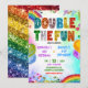 Rainbow Glitter Sequin Sibling Birthday Invitation, colorful Joint Birthday Invitation, Double The Fun Siblings Birthday Invite, Editable Double Birthday