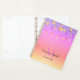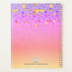 Dieser gürtelige Planer ist mit glühenden Imitaten mit goldenen und rosa Sternen auf einem rosa Regenbogen-Glitzer-Hintergrund dekoriert. Einfache Anpassung mit Ihrem Namen, Monogramm und Jahr.
