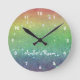 Rainbow Glitzer Kid's Bedroom Wanduhr. Schriftart von Zahlen und Text ist anpassbar. Personalisieren Sie Ihre Daten mit dem Namen des Kindes.