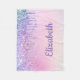 Niedliche Fleecedecke mit Regenbogen-Imitaten, die Glitzer vor einem rosa Hintergrund tropfen. Personalisieren Sie mit ihrem Namen in lila Schrift.