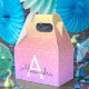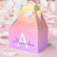 Gold, Rosa und Lila Ombre Rainbow Pastel Imitate Glitzer und Sparkle Elegant Geschenkbox. Diese Geschenkboxen kann individuell auf Ihren Vor- und Vornamen abgestimmt werden und macht eine großartige Geschenkboxen für Geburtstag, Junggeselinnen-Abschied, Brautparty oder Babydusche.