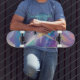 Treten Sie ein in eine Fantasiewelt mit diesem magischen Einhorn, das in einem pastellfarbenen Himmel schwebt, der mit Wattestäbchen und kosmischen Glitzern gefüllt ist. Dieser Traumprint ist ein Statement-Geschenk für Einhornliebhaber, Tagträumer oder alle, die Pastellskateboards und skurrile Lieben.