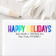 "Gute Ferien!" Ein farbenfroher Holiday Gruß in einem modernen Schriftart in Regenbogenfarben. Einfach mit Ihrem Namen und Ihrer Adresse anpassen. Teil unserer Rainbow Holiday Kollektion.