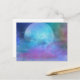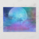 Die Karte zeigt einen blauen Mond, der am Himmel hängt und teilweise von einer Wolke aus schimmerndem Regenbogenhaze bedeckt ist.