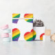 Dieses Packpapier weist ein sich wiederholendes Muster von Regenbogenstreifen-Herzen auf weißem Hintergrund auf. Zeigen Sie Ihre wahren Farben, unterstützen Sie die Gleichheit der Ehen und feiern Sie Gay Pride.