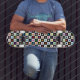 Eine gemusterte Decke auf dem Trend mit schwarz-weißem Schachbrett und einem farbigen Herzenbogen verleiht diesem Skateboarddeck ein fröhliches Ambiente.