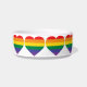 Diese fütternd Schüssel weist ein sich wiederholendes Muster von Regenbogenherzen auf. Zeigen Sie Ihre wahren Farben, unterstützen Sie die Gleichheit der Ehen und feiern Sie Gay Pride.