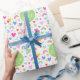 Feiern Sie mit diesem niedlichen und farbenfrohen Umhüllungspapier den Zauber, drei zu drehen! Eine lustige Vorlage, mit der Phrase "Happy Birthday" in trendiger Schrift, und personalisiert mit dem Namen Ihres Kindes. Farbenfrohe Regenbögen, Herzen, Sterne und das überaus wichtige Geburtstagszeitalter werden durch das ganze Muster hindurch wiederholt. Ideal für die Feier der ersten, zweiten, dritten, vierten oder fünften Frühjahre und eine schöne Ergänzung zu Ihrer Geschenkpackung! Die Farben sind hell und pastellfarben, mit Rosa, Rot, Gelb, Grün, Blau und Weiß. Bestellen Sie die Online-Kollektion für beliebtere Produktideen für Kindergeburtstage!