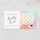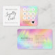 Das ist die perfekte Visitenkarte für eine trendige, stilvolle, mädchenhafte und moderne Lash-Künstlerin, Makeup-Künstlerin, Nageltechnikerin und viele weitere Berufe. Dieses Design zeichnet sich durch einen regenbogenfarbenen, schematisch gestalteten holografischen irisierenden Hintergrund mit eleganter handgeschriebener Schrift Typografie aus. Es ist modern, elegant, mädchenhaft, einzigartig, trendig, stilvoll und cool; das perfekte Design, um Ihre Kunden zu beeindrucken. ***WICHTIGE HINWEIS FÜR DESIGN: Bei jeder individuellen Designanforderung, z. B. passenden Produktanforderungen, Farbänderungen, Platzierungsänderungen oder anderen Änderungswünschen, benachrichtigen Sie den Designer. Sie können ihr sogar eine Anfrage für ein komplett individuelles und neues Design schicken.