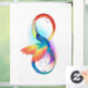 Schönes unendliches Tattoo mit Regenbogen Kolibri. Regenbogenvogel.