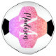 Machen Sie Ihr Spiel Spaß mit diesem Rainbow Imitate Glitzer Script Monogram Personalisiert Soccer Ball. Es ist modern mit einem Imitat Glitzer Hintergrund gestaltet. Monogram initial ist in großer weißer Schrift auf der Mitte und Name ist in schwarzer Kalligrafie Skriptschrift, Klicken Sie personalisieren Vorlage Option und geben Sie Monogramm und Name.