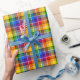 Geschenkpackung mit einem leuchtend mehrfarbigen karierten karierten Muster. Ein Plaidwerx Original Tartan Design.