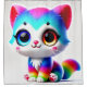 Dieser Duschvorhang hat ein Regenbogenkitt darauf.