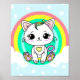Rainbow kitty Poster. Niedliche Katze sitzt auf einem Regenbogen. Perfekt für den Katzenliebhaber / Besitzer.