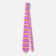 Krawatte mit hellen und freundlichen horizontalen Streifen in Rosa, Gelb und lila auf einem abstrakten Wabenhintergrund.
