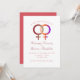 Die weiblichen Symbole des Regenbogens sind miteinander verbunden und für die kommende Hochzeit eines lesbischen Paares konzipiert. Jeder Text kann individuell angepasst werden oder der Text kann gelöscht werden, wenn Sie es vorziehen. Diese Einladung ist Teil einer Kollektion, so bitte Karo aus den anderen Artikeln. Wenn es andere Produkte mit diesem Design gibt, die Sie wünschen, kontaktieren Sie mich bitte unter lesley@ahahdodo.com