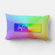 Ein Kopfkissen mit Regenbogenfarben für die LGBT-Community mit der Meldung "Safe Space" auf Vorder- und Rückseite. Ändern Sie den Text in einen Namen oder Initialen, wenn Sie möchten.