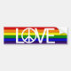 Ein Autoaufkleber in leuchtenden Farben mit weißer Liebe und das O durch ein Friedenszeichen ersetzt. So können Sie jeden Tag Stolz und Liebe für jeden zeigen.