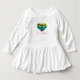 Farbiges Herz aus Makaronen mit der Beschriftung: Süß. Herz. Hübsches kleines Kleid für Ihr Kleinkind.