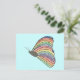 Malerei eines Schmetterlings in den Farben des Regenbogens, in einem Mosaikmuster, auf Postkarten gedruckt.