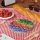 Helles und farbenfrohes Regenbogenmosaik. Grosser Hintergrund zum Anpassen mit Text oder behalt als Dekormuster.