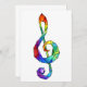 Polygonal, Regenbogen, knallknallknackige Musiktaste auf weißem Hintergrund. Polygontattoo. Treble clef