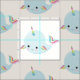 Rainbow Narwhal Kawaii Muster in Pastel Blue Fabric