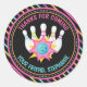 Rainbow Neon Bowling Birthday Party Danke für den klassischen Rundaufkleber. In diesem Design finden Sie Bowling-Buttone, eine Bowlingkugel und Sterne. Helle Neonfarben aus Regenbogen heben sich vor dem schwarzen Hintergrund hervor. Personalisieren Sie diese individuelle Einladung Design mit Ihren eigenen Party-Details.