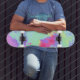 Das farbenfrohe Skateboard mit einem unordentlichen Spritzer-Effekt ist perfekt für Teenager oder Paare, die eine mutige Persönlichkeit haben, sowohl für Kinder und Jugendliche jeden Alters, als auch für Karo.