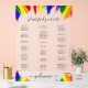 Akryles LGBT Sitzdiagramm mit Regenbogenfarben und einem transparenten, weißen Hintergrund. Sitzplan für eine LGBTQ Hochzeit mit Stolz-Fahne-Pinselstrichen. Lesbische Hochzeitskarte mit Pinselstrichen in der Farbe der Stolzflagge. Gay Hochzeitskarte mit bezaubernden Schriftart und farbenprächtigen Pinselstrichen.